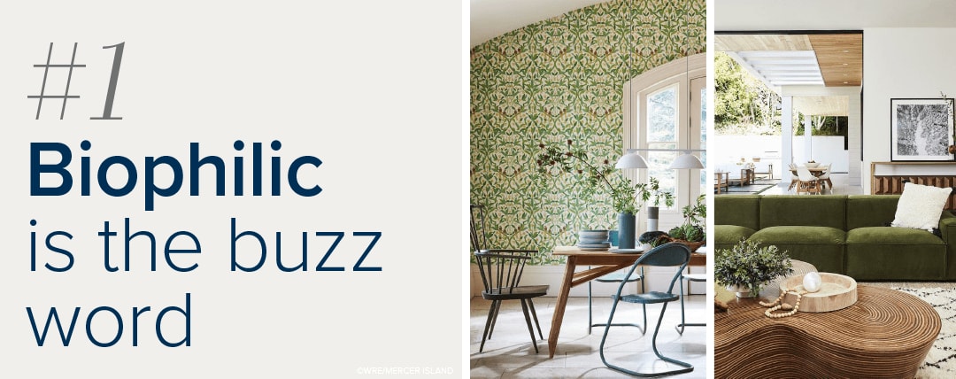 biophilic craze–borrowing from a design concept centered around bringing the outdoors in. Now plants are going beyond the pot into integrated indoor gardens, floral ceilings, greenery-inspired motifs, and plant-focused decor/furniture all designed to create a visual connection with nature. We’re also seeing a focus on natural lighting and fresh air, with folding window walls and alfresco living spaces increasing in prominence.